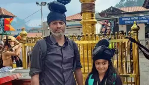 கேரளாவின் கொல்லம் மாவட்டம் ஏழுகோன் பகுதியை சேர்ந்தவர் அபிலாஷ் மணி. இவரின் மகள் அதிதிக்கு 10 வயது பூர்த்தியாக ஒரு நாள் மட்டுமே பாக்கி இருந்த நிலையில் நேற்று முன்தினம் தனது தந்தையுடன், இருமுடி கட்டி சபரிமலைக்கு 50-வது முறையாக யாத்திரை வந்தார்.